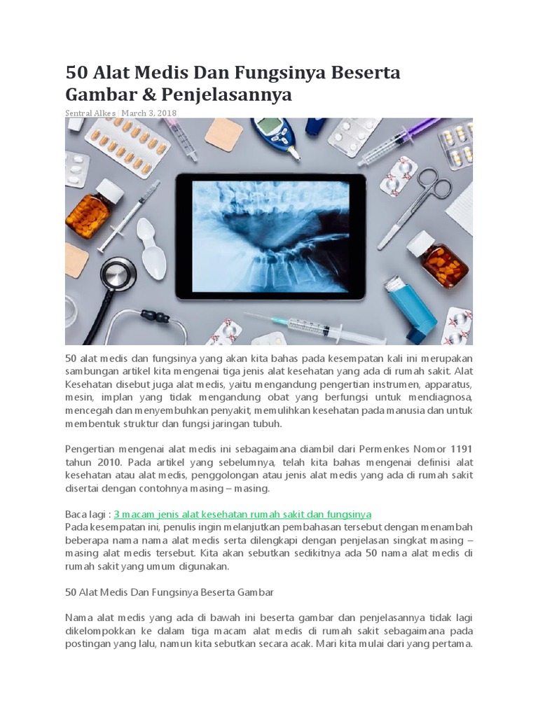 Tugas Alat Kesehatan Beserta Fungsinya ~ Buku Merah Kreatif. Tingginya permintaan akan alat kesehatan mengakibatkan tumbuh suburnya bisnis alat alat kesehatan. Mungkin orang yang sudah berkecimpung dalam dunia medis tentu mengetahui apa itu alat kesehatan. Pengenalan ini sangat penting terutama untuk kamu yang ingin menjadi dokter atau yang berkaitan dengannya. Berikut 12 macam macam alat kesehatan/medis yang biasa digunakan oleh para dokter beserta fungsinya Daftar 50 alat kesehatan dan fungsinya lengkap dengan gambar. Alat yang digunakan dalam pemeriksaan endoscopy ini dinamakan endoskop. Alat alat kesehatan dan fungsinya. Keberadaan alat berat (heavy equipments) tidak bisa dipisahkan dari aktifitas pertambangan. Alat ini merupakan perangkat panjang berbentuk tabung kecil dan fleksibel yang memiliki cahaya serta kamera pada ujung alat tersebut dimana digunakan untuk pemantauan. Alat reproduksi adalah alat yang digunakan untuk proses reproduksi manusia. Untuk memegang atau mengambil alat dan bahan medis steril spaya tetap terjaga dalam kondisi steril, jika diambil dengan tangan kemungkinan alat tersebut menjadi tidak steril. Baik wanita maupun pria pasti memiliki alat reproduksi, dan alat reproduks. Sebelum membahas contoh gambar alat kesehatan beserta fungsinya, akan lebih baik jika mengerti apa itu yang dimaksud dengan alat kesehatan. Untuk memegang atau mengambil alat dan bahan medis steril spaya tetap terjaga dalam kondisi steril, jika diambil dengan tangan kemungkinan alat tersebut menjadi tidak steril. Gambar alat medis kedokteran rumah sakit contoh peralatan daftar nama macam kesehatan lengkap stetoskop pinset infus dan.