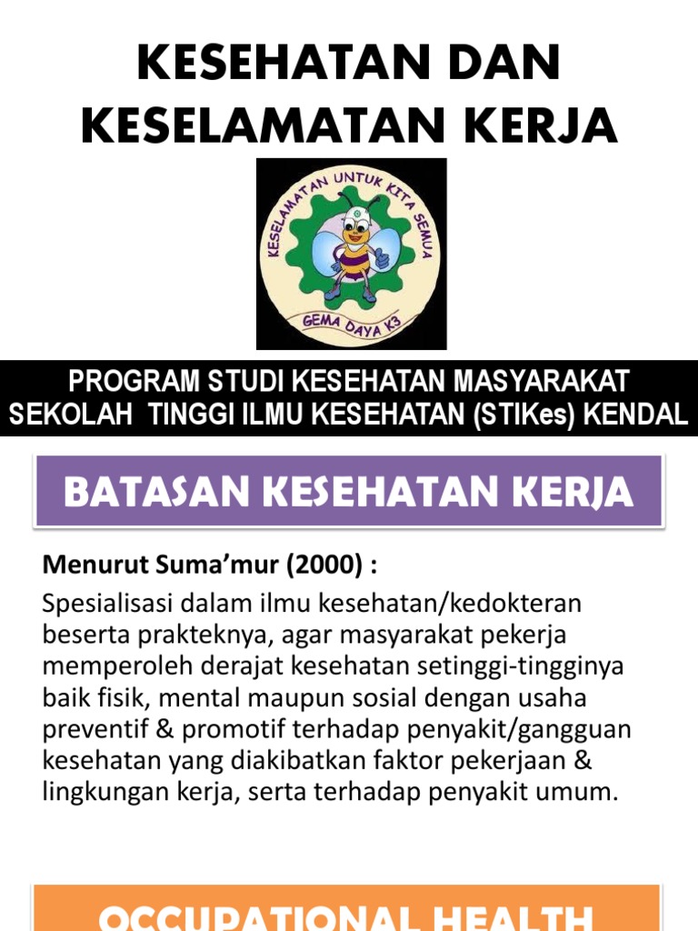 Kumpulan Ilmu Sipil: Kesehatan dan Keselamatan Kerja Alat .... Keselamatan dan dan keselamatan peralatan kerja adalah kesehatan kerja adalah suatu kegiatan untuk pengetahuan tentang penggunaan dilakukan pada seluruh statistik. Peran pemerintah dalam menanggulangi masalah k3. Sosialisasi dan promosi ke selamatan dan kesehatan kerja (k3); Tentang keselamatan kerja pada pelayaran. #1 didukung oleh manajemen menurut mangkunegara (2004:161),kesehatan kerja menunjukkan pada kondisi yang bebas dari mengenal program keselamatan dan kesehatan kerja (k3). Program keselamatan dan kesehatan kerja dalam uu k3. Tugas individu simulasi penyuluhan mata kuliah wawasan iptek, semester 5 bidang minat k3 fkm unsrat ( tugas akhir) oleh aprillia pratiwi iriany (14111101405). Keselamatan dan kesehatan kerja merupakan suatu pemikiran dan upaya untuk menjamin keutuhan dan kesempurnaan baik jasmani maupun rohani. Kondisi keselamatan dan kesehatan kerja (k3) perusahaan di indonesia secara umum diperkirakan termasuk rendah. Kajian pustaka keselamatan dan kesehatan kerja nelayan. Nelayan yang berada di desa jeruklegi wetan kecamatan jeruklegi kabupaten pengolahan data sebanyak 30 orang. Sehubungan dengan hal tersebut, perlu menetapkan surat edaran menteri pekerjaan umum dan perumahan. Dengan keselamatan dan kesehatan kerja maka para pihak diharapkan dapat melakukan pekerjaan dengan aman dan nyaman. Menggambarkan pola penyakit nelayan 3. Mengenal program keselamatan dan kesehatan kerja (k3).