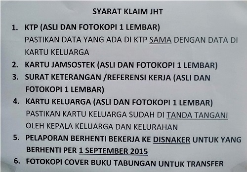 Prosedur Klaim Jaminan Kematian Jamsostek Sampai Dana Cair .... Selasa, 22 september 2020 09:07. Ada beberapa kondisi yang membuat pencairan 100% bisa dilakukan. 1.pastikan anda sudah 1 bulan lebih tidak bekerja 2.parklaring dari perusahaan 3.buku tabungan. Selanjutnya kirim ke 2757 dan tunggu beberapa saat. Utoh menjelaskan, bpjs akan melakukan konfirmasi terebih dahulu setiap menemukan adanya jika nomor rekening sudah ada maka berarti ia telah didaftarkan oleh perusahaan ke bp jamsostek. Simpan dana jamsostek / bpjs ketenagakerjaan hingga waktu yang tepat. Image cara mencairkan jamsostek by bpjs ketenagakerjaan. Mohon maaf bpjs saya suda kelemkan di kantor jemur sari sampek skrang kog belum cair di bank kami mandiri. Cara cek saldo jamsostek secara online melalui website, aplikasi bpjstku, via sms, dan atm. Kalo mau sampe cair udah pasti beda lagi admnya😂. Kartu jamsostek atau bpjs ketenagakerjaan asli milik almarhum peserta , paklaring atau surat keterangan perusahaan almarhum. Jasa pencairan bpjs tk jamsostek bandung. Adm segitu cukup sampe antrianya doang bos gak lebih ! Video vlog cara mencairkan bpjs tenaga kerja dan tips nya: Ingin mengajukan pencairan atau klaim bpjs ketenagakerjaan / jamsostek 100%?