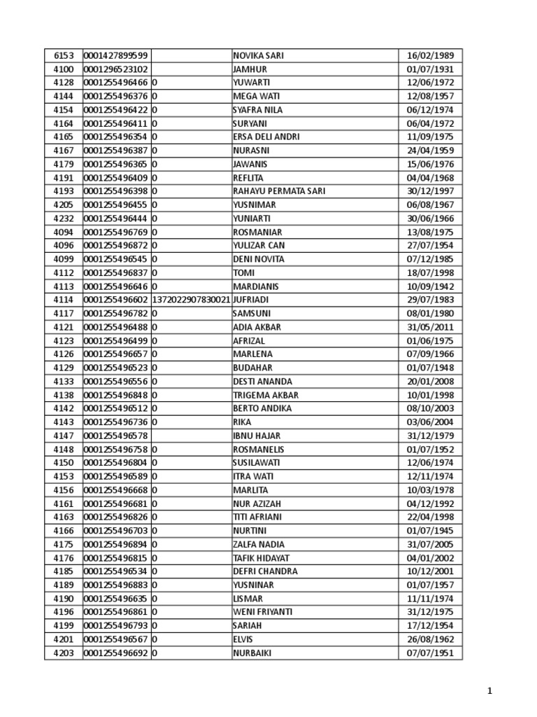 Formulir F5 BPJS Ketenagakerjaan-Klaim JHT , Input Existing Table , E.g.