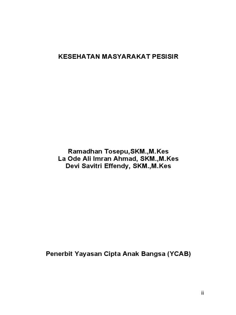 Tedi Zadmiko Minta Perawat Jadi Ujung Tombak Peningkatan .... Buku ini memuat berbagai macam dampak kesehatan terhadap masyarakat pesisir. Kesehatan masyarakat pesisir dan kepulauan. Ramadhan tosepu, la ode ali imran ahmad, devi savitri effendy © yayasan cipta anak bangsa (ycab) 2016. Kesehatan masyarakat pesisir (miniriset) | fkm uin su. Pendekatan yang digunakan berupa analisis kesehatan masyarakat. Masyarakat pesisir & struktur sosial nelayan 1) konsep masyarakat maritim 2) konsep masyarakat 6. Kehidupan bermasyarakat tidak lepas dari masalah kesehatan. Kesehatan masyarakat merupakan upaya untuk mencegah penyakit, memperpanjang hidup, dan meningkatkan kesehatan. Nafsiah mboi, sp.a, mph, saat meluncurkan program pemberdayaan kesehatan masyarakat pesisir atau green urban living. Menurut nafsiah, masyarakat pesisir termasuk nelayan memiliki risiko kesehatan yang tinggi sehingga perlu diberikan perhatian khusus dalam upaya pembangunan kesehatan.