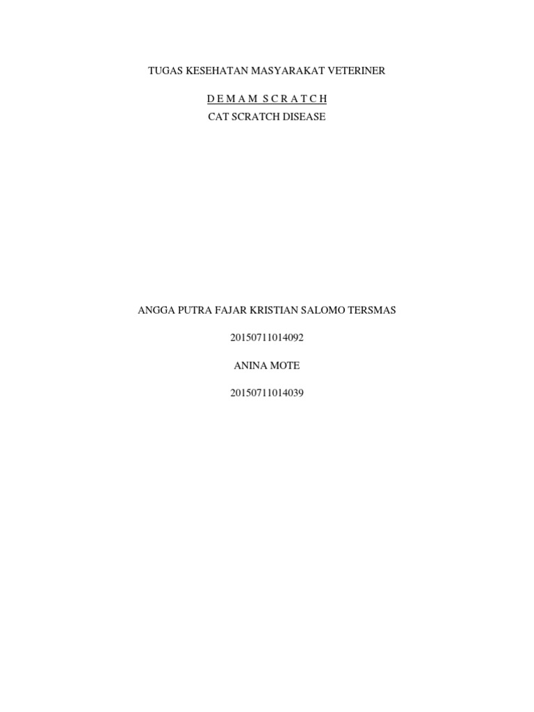 Tugas Kesehatan Masyarakat Veteriner Cat Scratch Disease . 22 Tahun 1983 Tentang Kesehatan Masyarakat Veteriner.