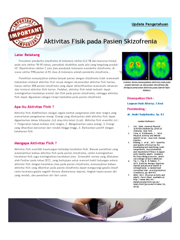 Leaflet Permasalahan Kesehatan Pasca Reproduksi Bagi Lansia. Partisipasi lansia dalam aktivitas fisik. Mencari upaya semaksimal mungkin agar para lansia yang menderita suatu. Makalah ini membahas mengenai menjaga kesehatan kardiovaskuler ( jantung dan peredaran darah) untuk usia lanjut. Tidak hanya bicara penyakit, tapi masalah2 penyesuaian diri (dalam arti luas) dan upaya2 menjadi sehat mental. All formats available for pc, mac, ebook readers and other mobile devices. Download kesehatan mental for free. Lebih dari separuh populasi lansia mempunyai tekanan darah yang lebih dari normal. Kesehatan mental pada lansia (lanjut usia) definisi aging (proses penuaan) aging atau aging atau penuaan berhubungan dengan adanya dua fenomena, yaitu penurunan fisiologik tubuh dan peningkatan terjadinya penyakit (fowler, 2003). Beberapa karakteris k lansia yang perlu diketahui untuk mengetahui keberadaan masalah kesehatan lansia adalah: Bimbingan konseling keagamaan bagi kesehatan mental lansia. N stres, konflik, frustasi n dukungan sosial n penyesuaian diri, pengembangan potensi n masalah2 kesmen yang lebih patologis n penanganan/ intervensi n. Kesehatan mental lebih banyak menekankan perhatiannya pada gangguan mental daripada mengupayakan. Ketika psikologi agama dan kesehatan mental masuk dalam ruang islamisasi, keduanya … Abstrak ditinjau dari aspek kesehatan, kelompok lansia akan mengalami penurunan derajat kesehatan baik secara alamiah maupun akibat penyakit. Konsep kesehatan mental merupakan salah satu kajian utama dalam psikologi klinis.