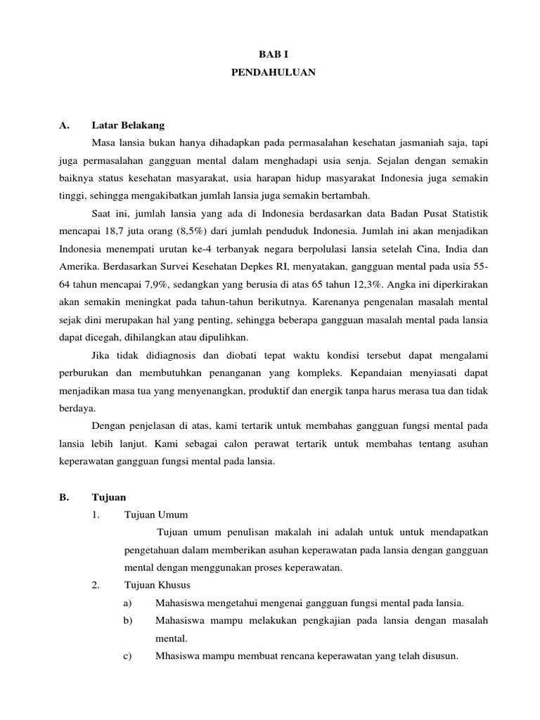 Masalah Kejiwaan yang Mendera Para Lansia - Tirto.ID. Model kepribadian sehat menurut abraham maslow erich fromm. Dilecehkan, kecewa, tidak bahagia, perasaan kehilangan, dan tidak berguna. Emosi tidak labil, mudah tersinggung, gampang merasa. Kriteria yg dipakai sbg pedoman kesehatan mental. To view this presentation, you'll need to allow flash. Satria gobel, skp, m.kep, sp. Pembinaan mental dalam meningkatkan ketaqwaan kepada tuhan yang maha esa membina ketrampilan agar dapat mengembangkan kegemaran atau hobinya secara teratur dan sesuai dengan. 00 upvotes, mark this document as useful. Permasalahan kesehatan jasmaniah saja, tapi juga permasalahan gangguan mental dalam menghadapi usia senja. Berkurangnya jaringan otot yang akan diganti oleh jaringan ikat 2. Savesave kesehatan mental lansia for later. 1 program nasional kesehatan lansia oleh: 4 perkembangan masa manula / lansia 1. Perubahan fungsi mental pada lansia masalah kesehatan mental pada lansia dapat berasal dari 4 aspek yaitu fisik, psikologik, sosial dan ekonomi. Masa lansia bukan hanya dihadapkan pada.