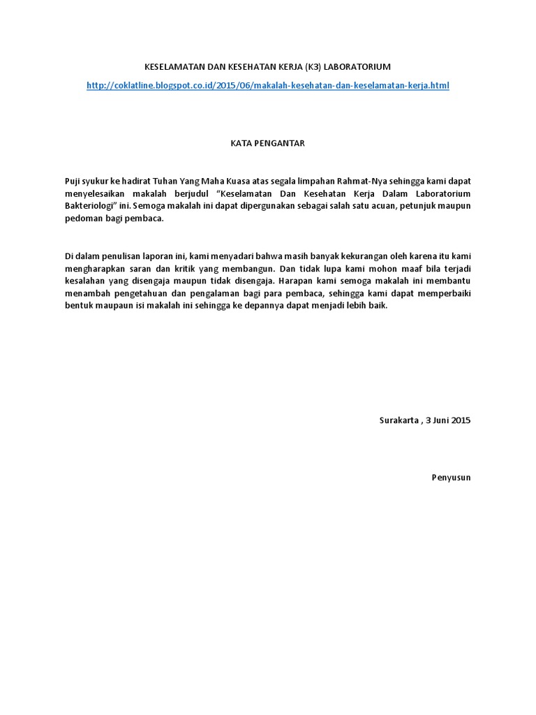 Makalah Tentang Keselamatan kerja di laboratorium biologi. Tugas makalah kesehatan keselamatan kerja pada laboratorium kesehatan. Sistem keselamatan dalam laboratorium yang sangat penting meliputi pemeriksaan bahaya, sistem izin kerja, pelaporan kecelakaan dan audit keselamatan. Kompleks kementerian pendidikan dan kebudayaan jalan jenderal sudirman, senayan jakarta pusat 10270. Abstract.the services of health laboratory are services that need to pay attention especially on the occupational health and safety due to the high risk that it could lead. Kesehatan , keselamatan dan kesejahteraan orang yg bekerja di. Bilamengabaikan kaidah ergonomi.pengembangan kesehatan dan keselamatan kerja di laboratorium aanalais kesehatan 5 akibat : Keselamatan dan kesehatan kerja di laboratorium biologi. Dalam bekerja di laboratorium dibutuhkan rules atau aturan keselamatan kerja di laboratorium. Keselamatan dan kesehatan kerja, kecelakaan kerja, penyakit akibat kerja, laboratorium kesehatan. Yuk, kita mengenal keselamatan kerja di laboratorium! Keselamatan kerja di laboratorium, perlu diinformasikan secara cukup (tidak berlebihan) dan relevan untuk mengetahui sumber bahaya di laboratorium dan akibat tujuan peraturan keselamatan kerja dimaksudkan untuk menjamin : Personel dan sistem manajemen laboratorium. Keselamatan kerja di laboratorium, perlu diinformasikan secara cukup (tidak berlebihan) dan relevan untuk mengetahui sumber bahaya di tujuan peraturan keselamatan kerja dimaksudkan untuk menjamin : Pengertian laboratorium sendiri adalah tempat atau ruangan tertentu yang dilengkapi dengan peralatan untuk mengadakan percobaan, pengukuran, riset ataupun pelatihan ilmiah. Kesehatan , keselamatan dan kesejahteraan orang yg bekerja di laboratorium.