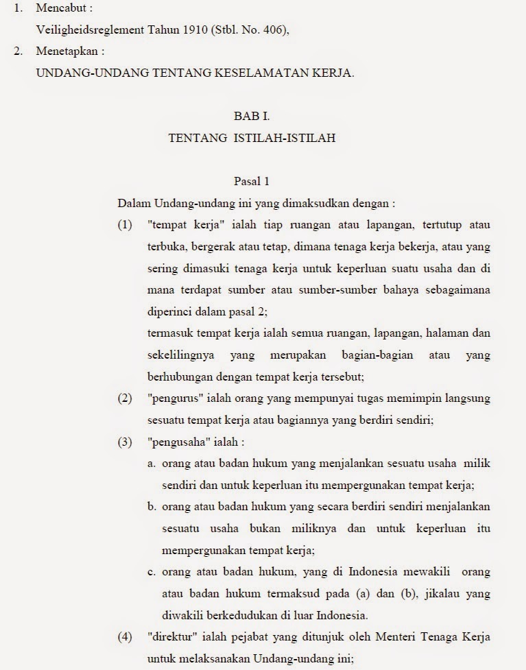UU No 1. Tahun 1970 ~ PUSDIKLAT K3 , Hukum Keselamatan Dan Kesehatan Kerja.