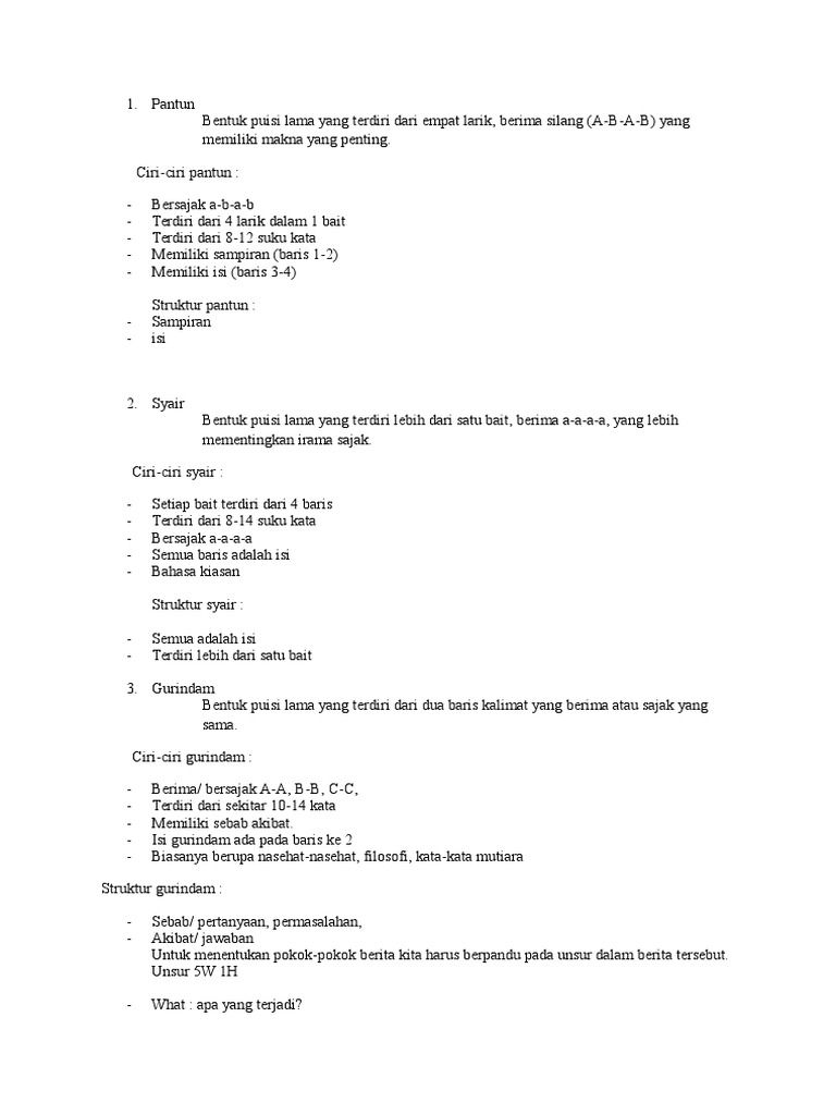 Jenis-jenis puisi lama ~ Rangkuman Pengetahuan Alam Lengkap. Pantun merupakan salah satu karya sastra melayu yang sampai sekarang masih dikembangkan. Sastra lama sastra lama, sering juga di sebut dengan kesusastraan klasik atau tradisional (sastra melayu). Samakon pendapatmu dengan pendapat inanmu apabilakamu menemukan pendapat yang berbeda lengkapi pendapoamu denganpendapat temanmu.irian media cetak.iklan media elektronik46 siswa sd/mi kelas vbentuklah sebuah kelompok yang mudros empat siswa. Pantun merupakan puisi lama yang terdiri dari empat baris dalam satu baitnya. Pantun salah satu jenis karya sastra lama. Pada awalnya, pantun merupakan karya sastra indonesia yang diungkapkan secara lisan, tetapi seiring perkembangannya pantun kini telah diungkapkan secara. Pantun ini awalnya merupakan karya sastra indonesia lama yang diungkapkan secara lisan, namun seiring berkembangnya zaman sekarang pantun pengertian lain dar pantun adalah karya yang dapat menghibur sekaligus mendidik dan menegur. Letaknya pada 2 baris terakhir yaitu pada 3 dan 4. Pantun merupakan puisi lama yang biasanya terdiri dari 4 baris dengan makna tertentu. Dan iisi yang merupakan bagian yang merupakan tujuan dari pantun tersebut. Baris pertama dan kedua merupakan sampiran, sedangkan baris ketiga dan keempatnya adalah isi. Karya sastra pantun begitu dikenal di indonesia. Pantun merupakan ungkapan perasaan dan. Syair merupakan bentuk puisi lama yang tiap bait terdiri atas empat larik. Pada umumnya syair merupakan rangkaian kisah yang panjang.