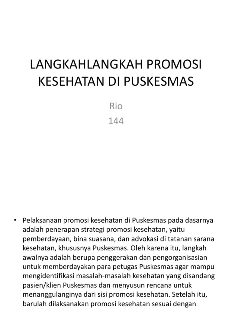 PROMOSI KESEHATAN PUSKESMAS MALANGKE: PERTEMUAAN EVALUASI .... Kegiatan promosi kesehatan di puskesmas sebagaimana yang dicontohkan dalam peraturan menteri kesehatan ri nomor 75 tahun 2014 tentang puske. Rasuna said blok x5 kav. Peraturan menteri kesehatan nomor 585/menkes/sk/v/2007 tentang pedoman pelaksanaan promosi kesehatan di puskesmas ruang lingkup direktorat promosi kesehatan dan pemberdayaan masyarakat kementerian kesehatan ri gedung dr. Puskesmas kecamatan setiabudi adalah fasilitas pelayanan kesehatan yang menyelenggarakan upaya. Cek kesehatan secara berkala, enyahkan asap rokok, rajin olahraga, diet sehat. Promosi kesehatan di puskesmas merupakan upaya puskesmas dalam memberdayakan pengunjung dan masyarakat baik didalam maupun di luar puskesmas agar berperilaku hidup bersih dan sehat (phbs) untuk mengenali masalah kesehatan, mencegah dan menanggulanginya. Materi orientasi promosi kesehatan di puskesmas tahun 2017. Puskesmas terus menjalankan program rutin dan tambahan promosi kesehatan di wilayah kerja pauh sesuai dengan kebutuhan sesuatu kelurahan supaya dapat mengubah perilaku masarakat dengan optimal dan. Promosi kesehatan adalah upaya untuk memberdayakan masyarakat agar dapat memelihara, meningkatkan dan melindungi kesehatannya (who). Kegiatan promosi kesehatan di puskesmas pauh. Profil uptd balai laboratorium kesehatan provinsi lampung. Puskesmas kecamatan setiabudi merupakan salah satu puskesmas milik pemerintah daerah yang terletak di pusat kota jakarta selatan yang dapat melayani pasien umum dan bpjs. Promosi kesehatan jaga kesehatan ya guys π pola hidup sehat dengan cerdik: Promosi kesehatan adalah upaya meningkatkan kemampuan masyarakat berperilaku hidup bersih dan sehat melalui pembelajaran dari, oleh. Untuk meningkatkan pelayanan kesehatan di puskesmas, beberapa puskesmas telah ditingkatkan menjadi puskesmas perawatan.