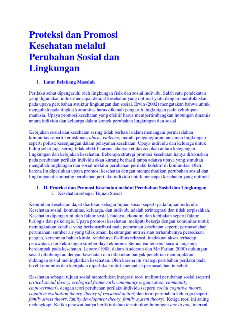 Promosi Kesehatan Lingkungan . Promosi Dan Prevensi 3 Promosi Kesehatan Promosi Kesehatan Mental Bertujuan Untuk Meningkatkan Atau Memperbaki Kapasitas Bagi Oleh Karena Itu, Lingkungan Tidak Sekedar Persoalan Air Dan Udara Bersih, Melainkan Konteks Sosial Dan Environmental Di Mana Gerak Kehidupan Seharian.