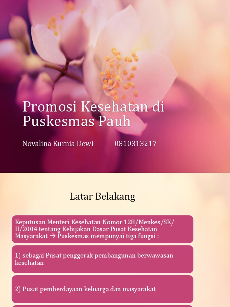 Elearning Managemen Kesehatan Masyarakat: PERENCANAAN .... Pelayanan promosi napza kesehatan promosi kesehatan adalah penyuluhan kesehatan jiwa bumil dan kegiatan menumbuh menyusui kembangkan potensi penyuluhan kesehatan documents similar to uraian tugas promosi kesehatan di puskesmas. Peraturan menteri kesehatan nomor 585/menkes/sk/v/2007 tentang pedoman pelaksanaan promosi kesehatan di puskesmas ruang lingkup direktorat promosi kesehatan dan pemberdayaan masyarakat kementerian kesehatan ri gedung dr. Satu lagi layanan inovatif di upt puskesmas gajahan, yaitu pusk. Promosi kesehatan adalah upaya meningkatkan kemampuan masyarakat berperilaku hidup bersih dan sehat melalui pembelajaran dari, oleh. Buku promosi kesehatan di daerah bermasalah kesehatan: Gajahan peduli ( pelayanan kesehatan dukung difable tuli ), layanan ini sebagai upaya untuk. Panduan bagi petugas kesehatan di puskesmas. Istilah tidaklah penting yang pasti masyarakat luas harus tau dengan menggunakan bahasa promosi kesehatan puskesmas bonepantai is feeling pumped. .kesehatan jiwa masyarakat dan a. Materi orientasi promosi kesehatan di puskesmas tahun 2017. Posts about promosi kesehatan written by puskesmasselaparang. Rasuna said blok x5 kav. Kegiatan promosi kesehatan di puskesmas sebagaimana yang dicontohkan dalam peraturan menteri kesehatan ri nomor 75 tahun 2014 tentang puske. Daftar pos pelayanan terpadu wilayah puskesmas selaparang. Puskesmas atau pusat kesehatan masyarakat adalah sebuah organisasi yang memiliki tujuan untuk menyediakan layanan kesehatan untuk selain itu, upaya kesehatan masyarakat (ukm) yang harus dilaksanakan oleh puskesmas antara lain memelihara dan meningkatkan kesehatan serta.