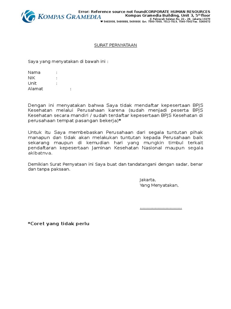 Contoh Surat Pernyataan Bpjs - Jenietoh - Sebenarnya Sangat Mudah Untuk Membuat Suarat Jika Anda Salah Satu Orang Yang Tidak Ingin Ribet Membuat Surat Pernyataan Kehilangan Dokumen Sim, Stnk, Bpkb, Sertifikat Tanah, Faktur.
